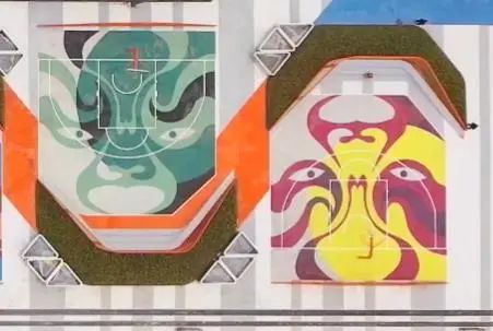 藝術活力區設有6片3V3籃球場及1片標準籃球場。設計者將國潮元素——戲劇臉譜的造型融入運動場地,吸睛度滿分。而整體如潑墨般的色塊帶來的視覺沖擊,則是對上下游不遠處的楊泗港大橋、鸚鵡洲大橋的遙相呼應。